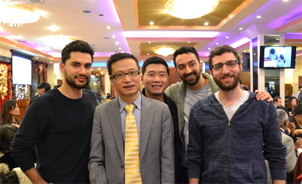 经常惠顾“老四川”等老字号餐厅的中西部医学院学生们,主要要求与晓军美食集团董事长胡晓军(左二)合影