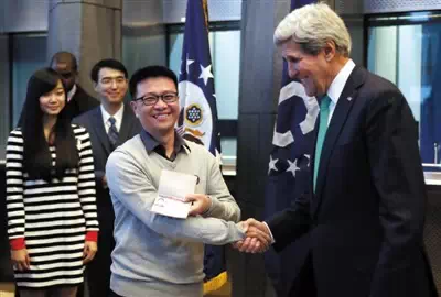 (美国务卿克里向中国公民颁发首批10年期赴美签证)BBC——中美互相延长对方学生游客签证期限