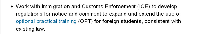 张哲瑞联合律师事务所表示:“奥巴马并未明确提出对高科技、高学历的外籍人士的利好政策。尽管有传闻说OPT将延长至四年,但目前还未有具体的条文规定”。