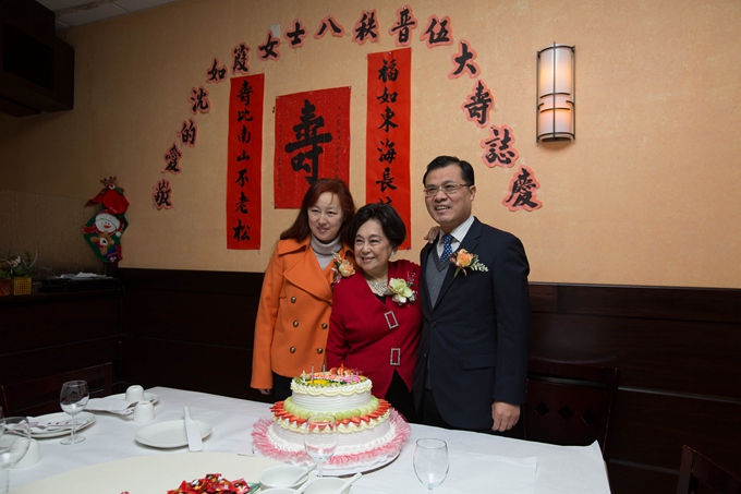 中国驻芝加哥总领事馆赵卫平总领事夫妇,新近到任的宋副总领事,侨务组长张庆新领事,侨务组领事宋爱华、岑建德领事,以及华联会主席汪兴无,理事长胡晓军,东方艺团团长郑征,黄河艺术团团长杨左,美中文化艺术学会会长何达权,知名侨领丘超廉、赵健航、朱庆龙、栾文琦等侨界友好出席了当日寿宴。大家欢聚一堂,共同祝愿汪妈妈沈如霞女士,福如东海长流水,寿比南山不老松。