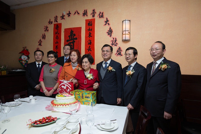 【芝加哥侨学网记者郭骋报道】上海同乡会会长沈如霞女士喜迎八十五大寿,总领馆赵卫平总领事夫妇以及侨社各位友好共同道贺。总领馆及华联会各界友人齐聚上海酒家(Moon Palace)与沈女士欢聚一堂,切蛋糕,唱生日歌。各界朋友亲切称呼沈女士为汪妈妈,寿宴在热烈友好的气氛中进行。