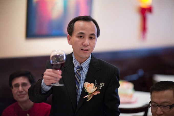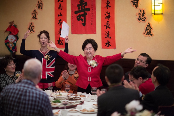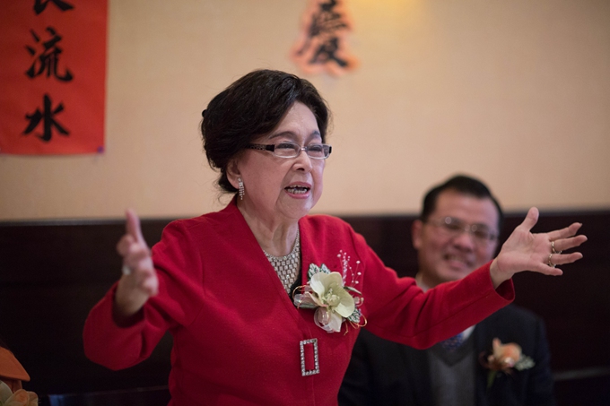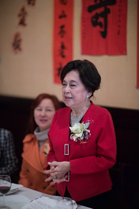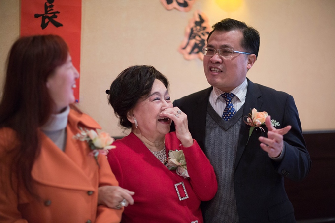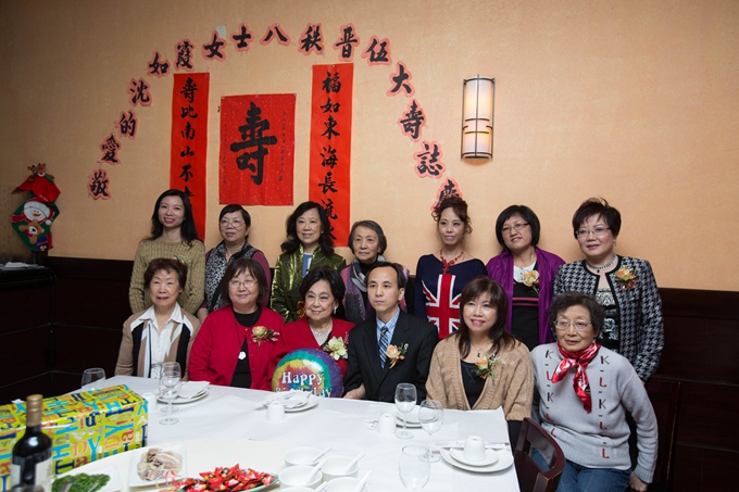 寿星汪妈妈首先致词,感谢各位朋友到场,表达作为中国人很自豪,并祝愿祖国更加强大。随后赵卫平总领事致词,称赞汪妈妈的爱国心,祝愿她健康快乐。新上任的副总领事刘先生向汪妈妈敬酒,并致以生日快乐的祝福。最后,华联会汪兴无先生致词,感谢汪妈妈常年来对华人社区做出的贡献,并祝贺她最近刚当选了华联会常务理事。寿宴是在位于中国城的上海酒家(Moon Palace