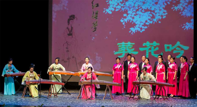 黄河艺术团送去了他们的看家节目:古筝与合唱“葬花吟”。演员们非常完美地诠释了这首名曲,领唱潘瑶的演唱可圈可点,如歌如泣,古筝领奏关梦华丝丝入扣的琴声更是把人们的思绪带到了红楼年代……,观众席里鸦雀无声,屏息聆听。