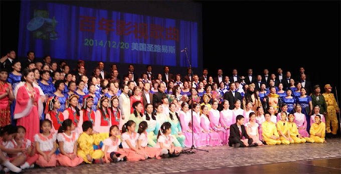 应圣路易国际艺术中心的邀请,黄河艺术团20人南下圣路易,参加在当地举行的“百年影视歌曲综艺晚会”。演出在密苏里浸信会大学(Missouri Baptist University)剧场举行。近千名观众怀著极大的热情前往欣赏。主办方邀请了高曼华、岳彩轮、韦桂林和庞旋等重量级的著名歌唱家,以及黄河艺术团、堪萨斯乐乐合唱团的加盟,整场节目各有特色,演出缤纷精彩。晚会演绎了近百年的中外影视音乐作品。从民族歌剧、风格多样的电影插曲、电视剧主题歌,满足了各年龄段观众的愿望。