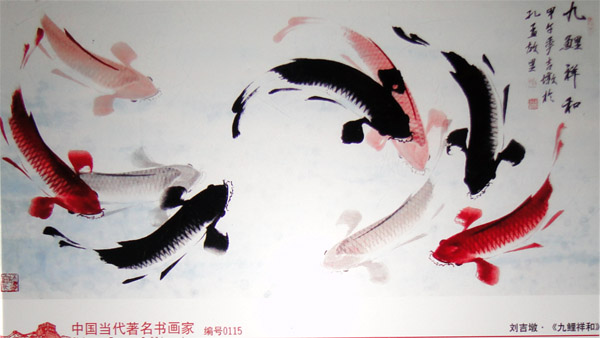 书画逐浪世界梦,传扬和平友谊曲。刘吉墩以中国农曆年度的祥和吉瑞为意思创作的中国画和汉字书法新品,被有关方面作为礼品馈赠给贵客尊宾、各方政要。刘吉墩特意创作国画《九鲤祥和》图和《习圆华梦》书作,以书画“祝俄罗斯索契冬奥会辉煌快乐”,特用陨石书画文具创作的新品九鲤祥和,特致普京总统表示祝愿:实现共同发展,促进世界和平;世界同享奥运,中国习圆华梦。同时并以同等书画向美国总统奥巴马特表致意:“互相尊重,合作共赢;和平发展,习圆华梦。”向世界表达中国公民热爱和平、友好交流、合作发展的意愿。