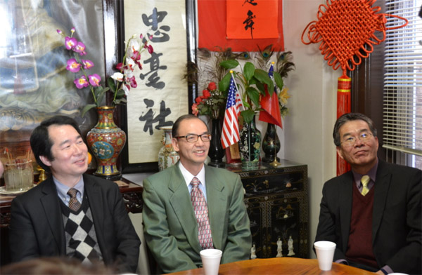 拜会当天,时逢芝加哥寒流来袭,滴水成冰。当日上午10时,林西河堂主要职员早早来到会所,准备热茶,蛋糕,欢迎处长一行的到来。林西河堂内,挂林氏先祖比干神像,为迎接处长一行的到来,神像两侧特别张贴了“芝城贺岁凤来仪,亳社迎春龙起舞”对联。