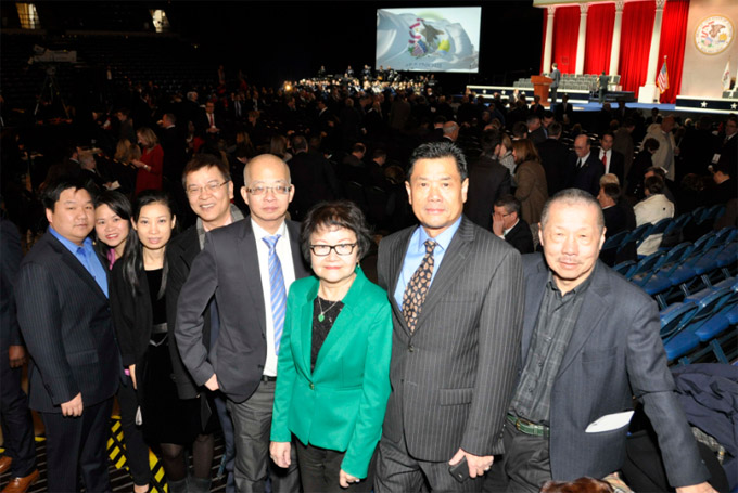马森柱(右四)、陈羡韶(右二)、韩龙灏(右一)等华人社区代表,应邀出席州长就职典礼