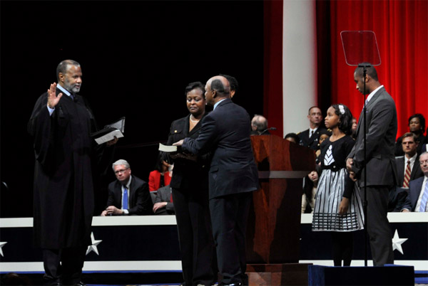 伊州州务卿杰西怀特在法官的监誓下宣誓就职