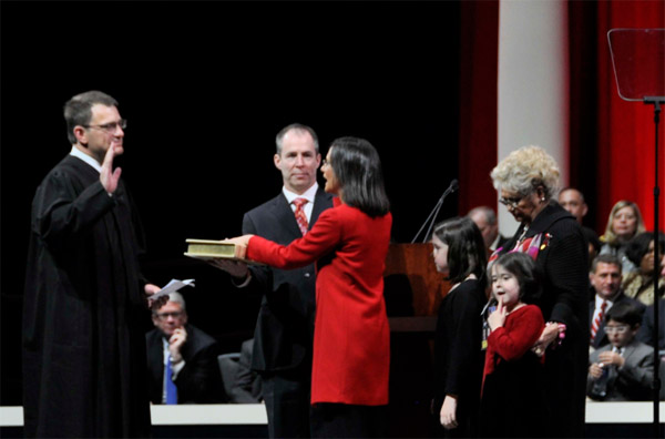 伊州检察长 Lisa Madigan在法官的监誓下宣誓就职