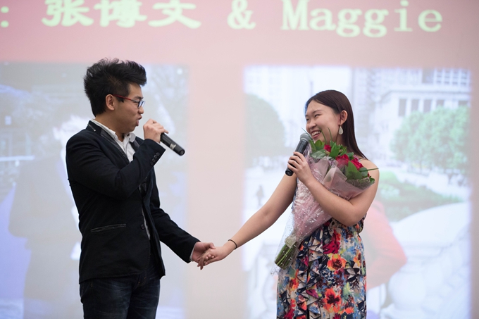 优雅过后,Primo Dance的街舞表演为大家带来无数激情。这支《舞动青春》由芝加哥地区最棒的老牌校园街舞社团UIC Primo Dance为大家演绎。由张博文和Maggie演唱的《你最珍贵》实数充满了温馨甜蜜,他们悠扬的歌声和结尾处的牵手使同学们陷入这情人节的续曲中难以自拔。而这首歌还有一个有趣的小插曲,Maggie的男朋友在副歌部分开始之前为Maggie献一束鲜花并在台上轻轻一吻,这更是为歌曲添彩。