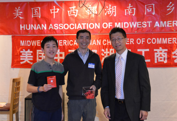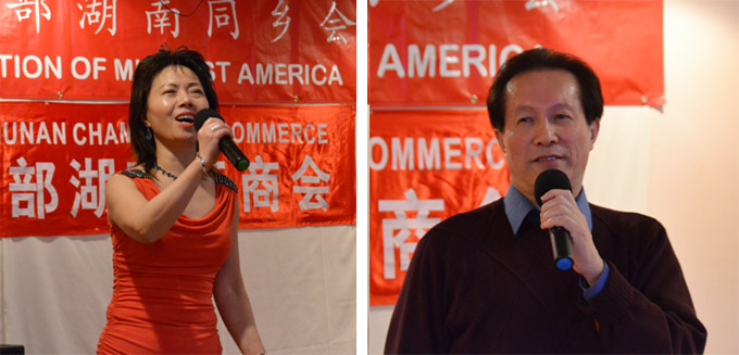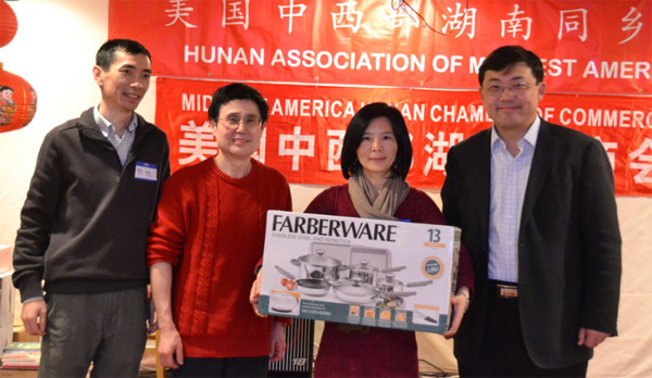 中国驻芝加哥总领事馆代总领事王永,侨务组长张庆,以及华联会主席汪兴无,希林西北中文学校校长石晓红、理事长 Jason Peng 等嘉宾出席了当日的活动。代总领事王永特别带来新春挂历、大红中国结等新春吉祥礼物,并向大芝加哥地区的湖南乡亲们送来祖国的问候与祝福。湖南同乡会会长王柏青,湖南工商会会长李志江,一致呼吁大家凭借湘音乡情的纽带,团结互助,发展会务,努力促进美中地区与祖国家乡的友好交流、经贸合作。