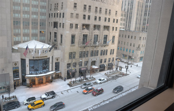 “芝加哥过大年”的中国旅游团,芝加哥本地旅游项目包括海军码头、密西根大道辉煌一英里等。图为老四川窗外的密西根大道