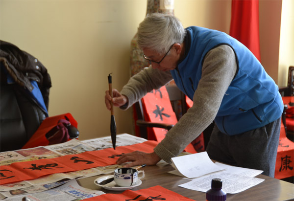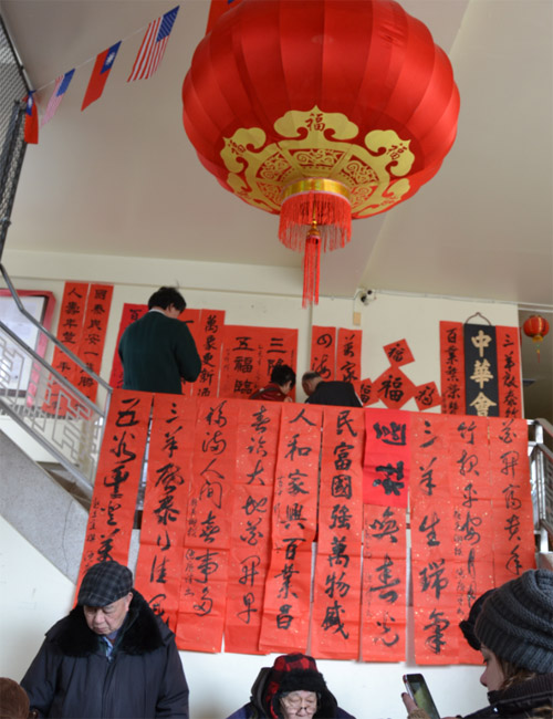 区长拜会当天,正值中华会馆举行新春对联挥毫迎春活动