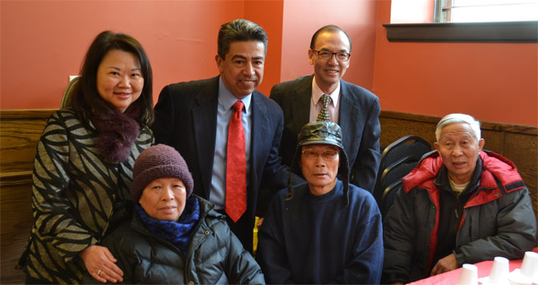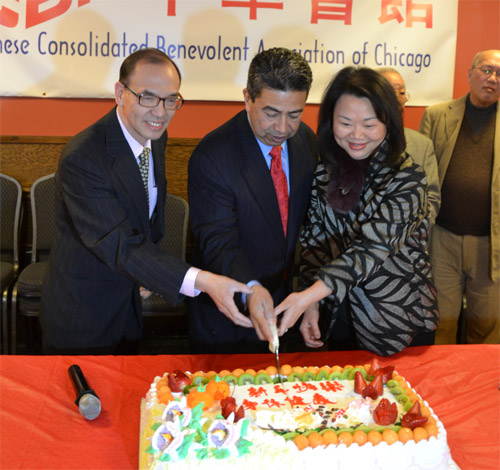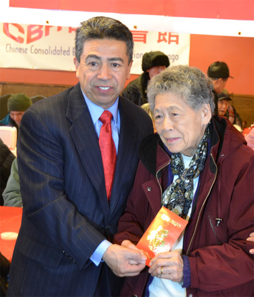 芝加哥侨学网报道】在农历新春之际,25 区区长苏礼仕(Ald. Danny Solis)来到芝城中华会馆,向中华会馆老人餐厅的华裔耆老拜年,共庆羊年新春。苏礼仕区长为老人家带来们带来喜庆大蛋糕,祝福大家身体健康,万事如意。