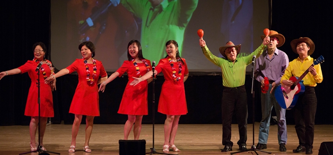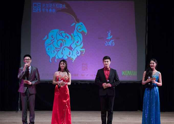 郭骋摄影报道】由芝加哥大学中国学生会(UC CSSA)主办,芝加哥九所高校中国学生会联合推出的2015羊年春节晚会,2月22日在芝加哥大学举行。洋溢青春活力的爵士舞,唯美风范的舞蹈《玉生烟》,流行与美声的动人歌喉,钢枪刺猴、铁锤砸背的少林真功夫,还有阳春白雪的歌剧选段,秋韵组合吟唱田园风光,还爆笑全场的游戏互动,精彩的节目,显示出大芝加哥侨学各界的人才济济。精彩的节目,还有排期长队的年夜饭,让数百观众难忘良宵。