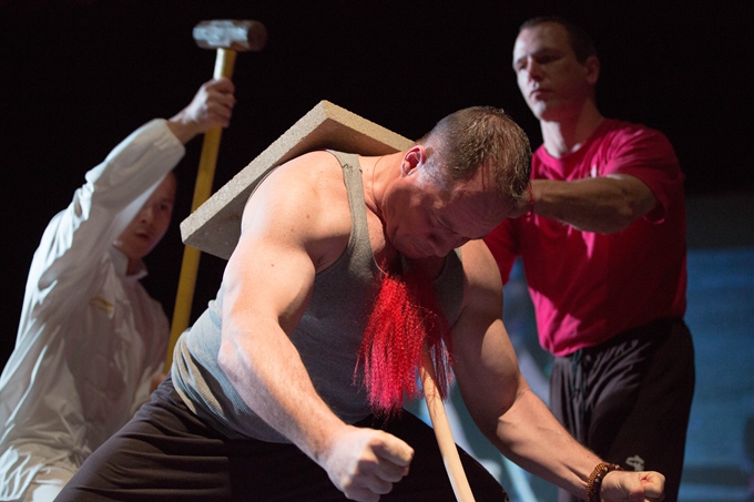 少林洋弟子,钢枪刺喉,背负石板,师傅以及铁锤,轻松断石。全场观众也犹如钢枪在喉,惊声尖叫,然后就是寂静,然后就是鼓掌。。。