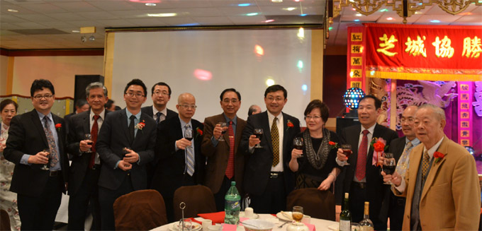 中国驻芝加哥总领事馆代总领事王永、侨务组张庆,台北驻芝加哥经济文化办事处副处长郭圣明、芝加哥华侨文教服务中心主任阎树荣登等海峡两岸代表出席了当日的活动。当晚宴会由芝城协胜公会外交陈羡韶主持,芝城协胜公会主席钟君铭致辞。