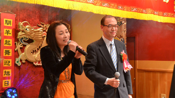 协胜公会春宴当天恰逢三八妇女节,协胜公会的妇女职员们当天隆重登台,大展歌喉,众多新春喜庆歌曲,让宴会充满节日氛围。“恭喜你,恭喜你,芝城协胜出了个林总理”,协胜公会能歌善舞的职员林淑华,当天特别改编流行歌曲,祝贺林惠明当选全美协胜公会总理,为芝城华社争光。中华会馆主席刘国新,当天携夫人登台,夫妻双双深情对唱一曲,全场掌声如雷。芝加哥总领事馆领事、侨教中心主任阎树,当天也登台献艺,一展歌喉,为协胜公会盛宴锦上添花。(图文: