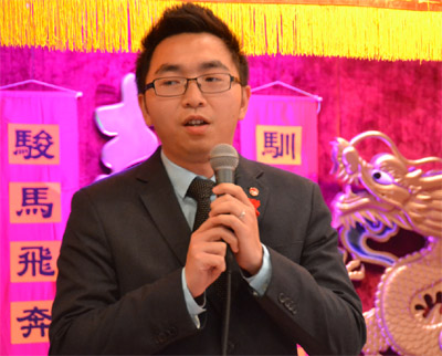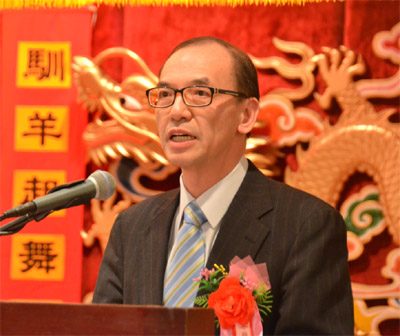 钟君铭主席首先代表主办方,对海峡两岸嘉宾、各界侨社先进的莅临表示热烈欢迎,他感谢兄弟社团多年来对协胜公会会务的大力支持,在羊年新春之际,钟君铭祝福大家羊年三阳开泰、大吉大利,他呼吁协胜公会职员在新的一年中继续努力,为侨社的发展与繁荣作出更大贡献。