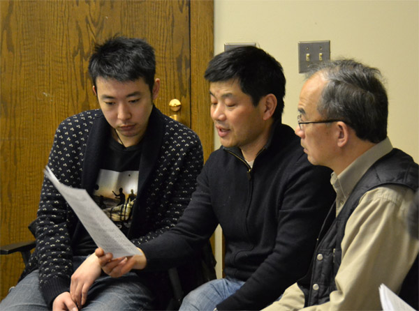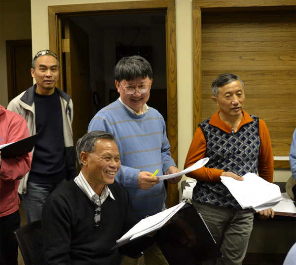 印州华夏文化中心合唱团的四位骨干成员(周明社,张静雷,王涛,胡培怡),长途驱车三小时赶来芝加哥观摩演练