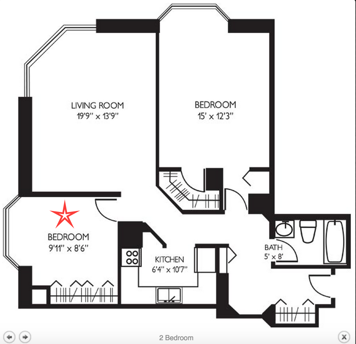 Gold Coast地区,1111 N DEARBORN两室一厅小卧招短租(图中标记的房间),6/10-7/30,日租40刀/天,周租245刀/7天,月租850刀/月,包水电网等杂费。