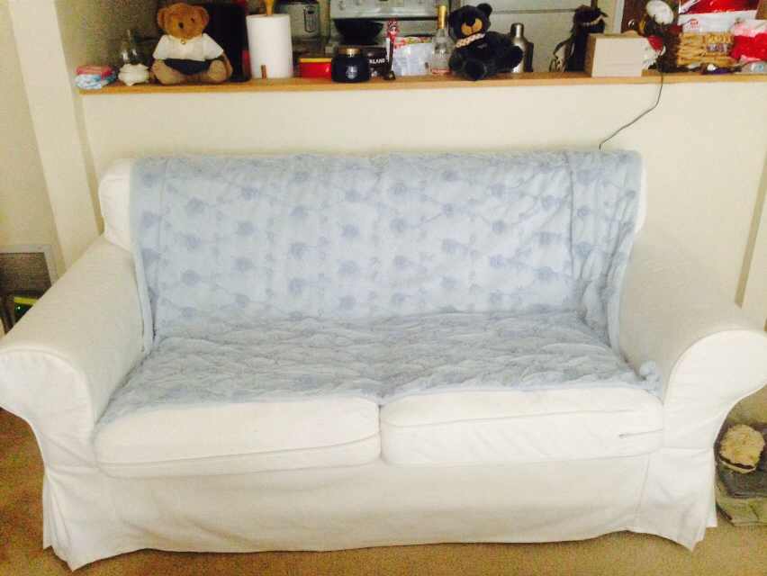 沙发,非常干净,一直有照一条毯子,几乎全新,现$160出,赠送玫瑰花小毯子,当时也$20左右买的