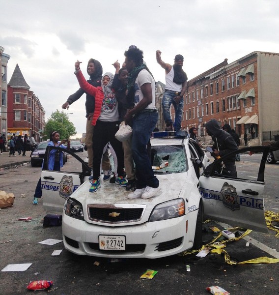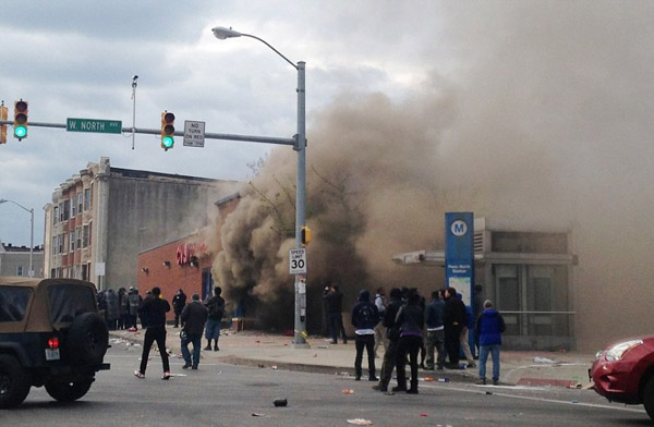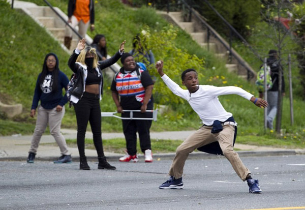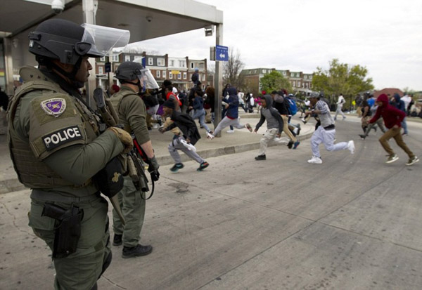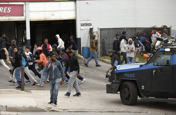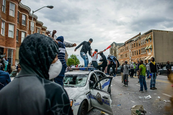 巴尔的摩非裔青年葛瑞(Freddie Gray)被警方逮捕死亡,27日举行葬礼,大批非裔青少年在放学後,透过社群媒介集结,攻击购物中心、商店、药房等公共场域,情况迅速失控。