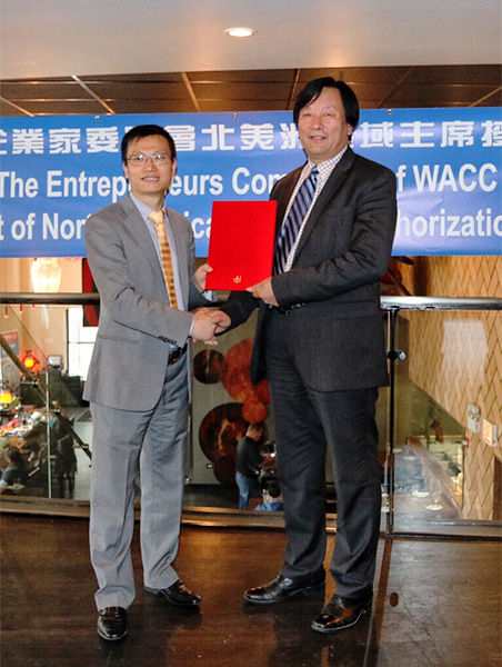 签字与授权仪式上,孙晓春代表世界烹饪联合会企业家委员会和全美中餐联盟与赵瑞主席签订战略合作伙伴关系,并授权芝加哥地区侨领胡晓军以世烹联企业家委员会在北美地区的主席。