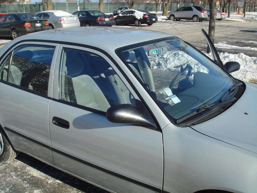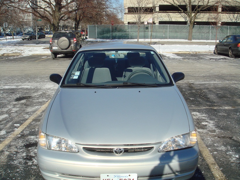 My car is 2000 Toyota Corolla CE with 132000 miles. It has four doors and power windows. Its body is new. Last month we changed two new tires. We bought it in late April and travelled to Detroit and Wisconsin by driving this car. It is very nice car. Now I will go back to China. The expected price is about $2900.