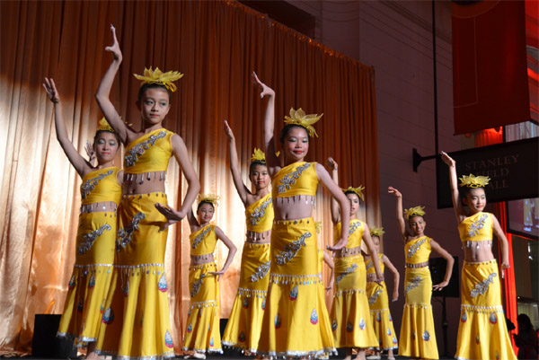 当日的筹款晚宴,举办地点为著名的福地博物馆(Field Museum)大厅,这样一个特别的晚宴举办地,是在唐仲英家族的大力支持下在得以实现。近千名各界来宾汇聚一堂,大家在晚宴开始前纷纷前往富地博物馆唐仲英中国馆参观,感受中国文化。晚宴开始后大家享用美味佳肴,欣赏华咨处儿童发展中心带来的舞蹈节目,感受华裔社区特色文化,让支持华裔社区的各界机构、商家代表度过一个难忘的慈善之夜。