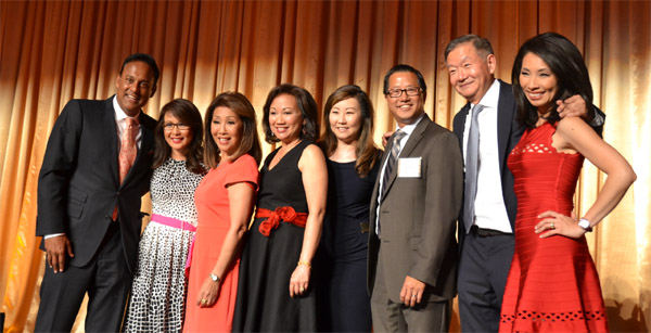 唐仲英之子Micheal Tang(右二)等嘉宾与ABC,WGN各大主流电视台华裔女主播合影
