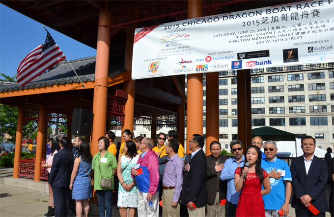 芝加哥侨学网报道】第十五届芝加哥龙舟赛(Chicago Dragon Boat Race)6月27日在中国城谭继平公园落幕。30支龙舟队全天角逐,热闹非凡。嘉宾开幕式,文艺表演,儿童游乐,这个为社区教育事业募款的公益比赛,让夏日的中国城人流如织,一派兴旺。