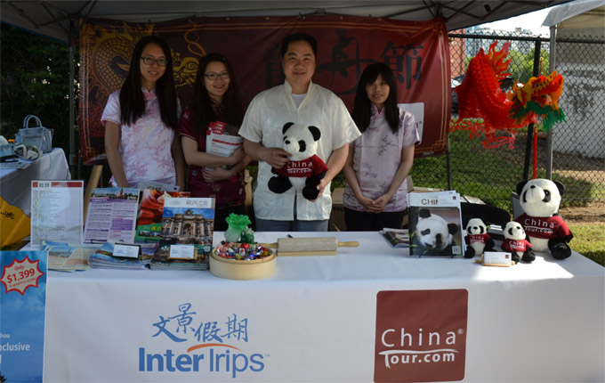 龙舟赛吸引众多商家参加,图为文景假期 摊位