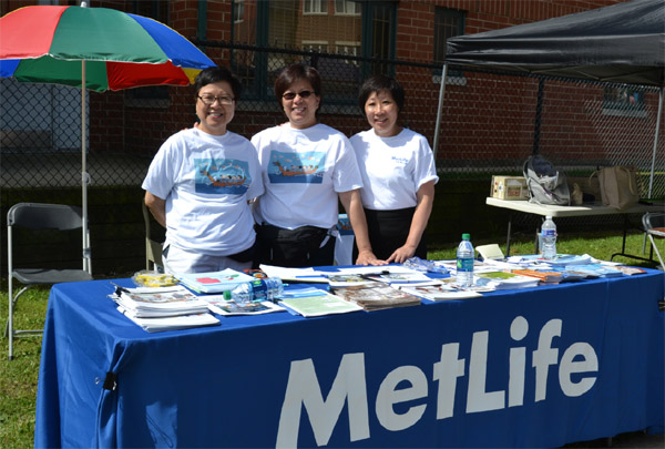 龙舟赛吸引众多商家参加,右一为大都会人寿华裔保险理财代表王晓雯