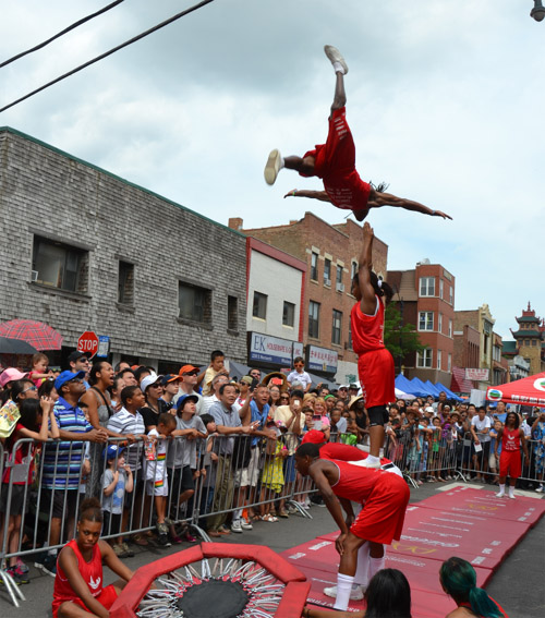 当日上午10时开始,中国城永活街(Wentworth Ave)沿线就已是人流如潮,各参与商家沿街拜好摊位迎接遊客,手工艺品、中国字画、民族乐器、盆栽、生活用品等琳琅满目的商品,让华埠呈现一片热火朝天式的兴旺。在夏令会主舞台,众多的节目吸引游客驻足。特别是州务卿杰西怀特的跟都队表演,小伙子们踏着弹簧垫飞跃人墙,作出各种高难度体操动作,就连80多岁的州务卿本人,也加入了人墙,亲自为夏令会助兴。
