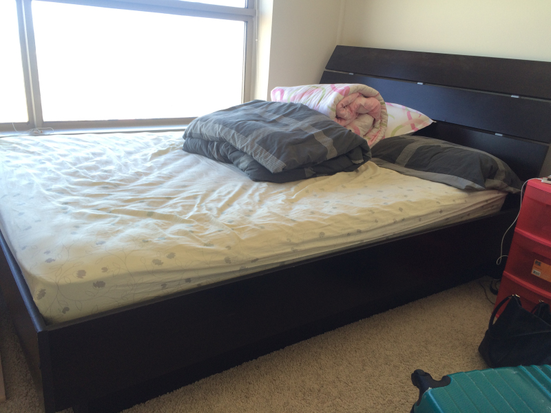 QUEEN size 实木床(宜家)+席梦思(绝非一般床垫!)9成新 170 (实木床跟BOX的区别真是太大了 实际考察就知道了 可赠送原价50的记忆棉枕头)(唯一还剩的优质大床!)先到先得,速度。床可以拆卸,变成一块一块的实木板,略重,若是往PT外运送请考虑请搬家车。