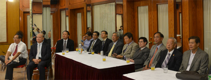 华联会主席汪兴无致辞,并向华联会职员鞠躬致谢