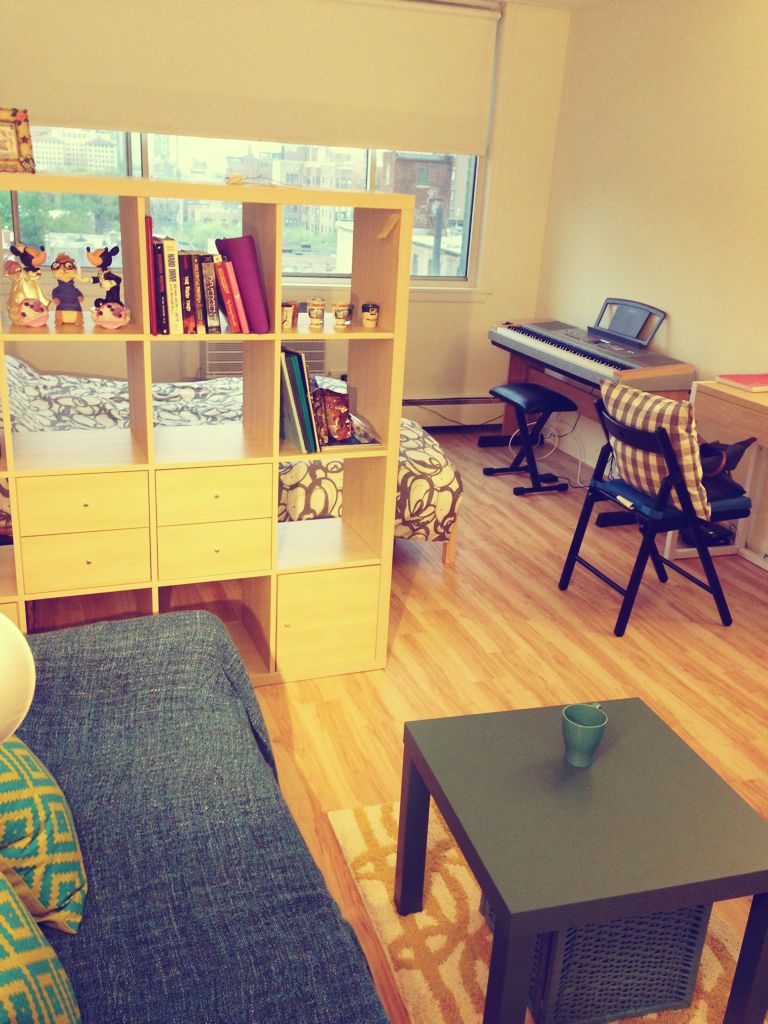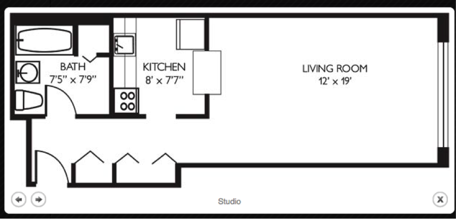 房子:Studio 朝南, 有厨房,卫生间,带大衣柜可做储物空间,370ft2, 一个月不含水电煤 $1184/mo 。有洗衣房,停车库,24小时维修人