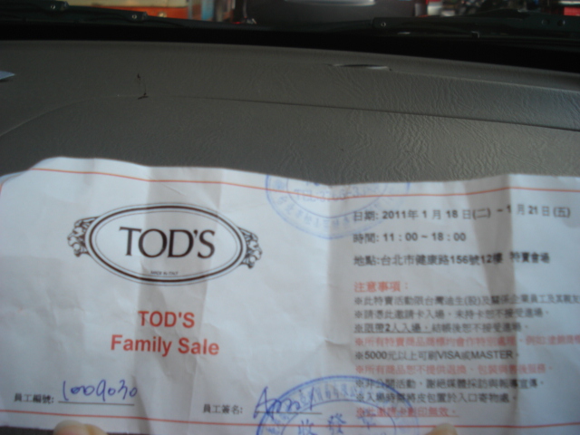 日前,托友人的VIP身份,有機會一睹 JP Tod's 的特賣會現況,想必是為了出清歷年來的存貨,所以為了親眼了解這個特賣會到底是舍麼樣的來頭,不惜在擁擠的長廊花了一個半小時排隊人擠人,最後終于進入會場。。。。。。