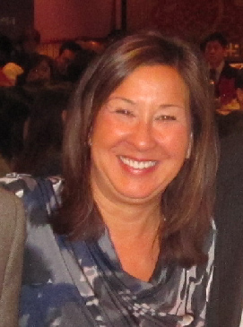 擁有一半華裔血統的彭珊蘭(左三),是新任市長艾曼紐的七人交接小組成員之一。圖為彭珊蘭出席華諮處募款餐會時,代表CNA捐贈一萬元給華諮處。 世界日报图片
