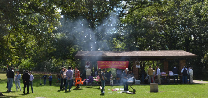 烧烤活动在芝加哥西北郊(Palatine,IL)风景如画的森立公园举行,浙江大学中西部校友会会长蔡文君、副会长鲁挺、张赐国等骨干职员,早早到场布置场地,张罗烧烤事宜。中午时分,新老校友们、各界嘉宾陆续前来,从60年后到90后,各年龄阶层的新老校友欢聚一堂,大家三五成群,笑声阵阵,烧烤架上炊烟缭绕,气氛热闹温馨。