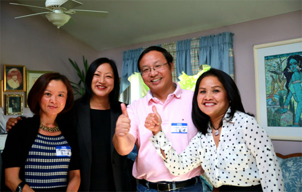 马静仪与华裔支持者合影,右为著名华裔大律师丘岩