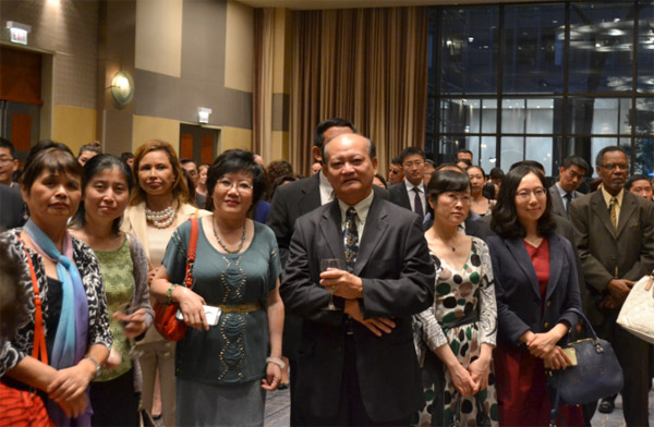 出席当日招待会的嘉宾包括伊州参议员苏▪雷津(Sue Rezin)、查宾▪罗斯(Chapin Rose),芝加哥警察局总指挥官加里▪麦卡锡(Garry McCarthy),伊州商贸局主任吉姆▪舒尔茨(Jim Schultz),印第安纳州罗根斯波特市市长特德▪富兰克林(Ted Franklin),大芝加哥地区华侨华人联合会主席汪兴无,芝加哥市長代表丽莎▪汉柯(Lisa Khonke),伊州州长代表丹尼斯▪郑(Dennis Jung),芝加哥旅游局局长唐▪威尔士(Don Welsh)等。