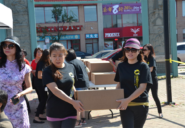 当日中午时分,华埠广场中秋灯笼高挂,千叟宴桌位摆满现场,主舞台附近嘉宾荟萃,游客驻足观望,商家摊位,儿童游乐充气床,整个华埠广场一派节日气象。本届“中秋嘉年华”活动召集人黄晖、徐婕雯、梁志荣,以及美国福建商业联合总会会长郑时坦等,当日身穿唐装、旗袍迎宾,来自伊州理工学院(IIT)、芝加哥中文学校的志愿者们各司其职,有条不紊。