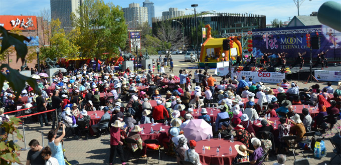【芝加哥侨学网报道】由青年企业家协会(CEO)、美国福建商业联合总会联合举办的“中秋嘉年华”活动,9月26日在中国城华埠广场隆重举行。千叟宴、中秋敬老红包、老寿星旗袍礼服秀,这是一场敬老尊老传统活动;芝城最强音歌唱比赛,动感街舞,少林功夫,吃饺子比赛,这是一次老少同欢的盛会,精彩的节目从中午时分开始,一直持续到中秋之际的皓月当空。