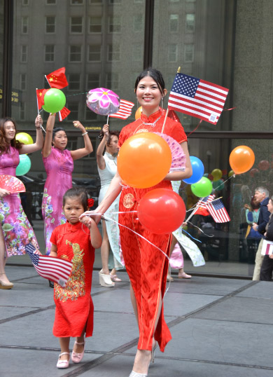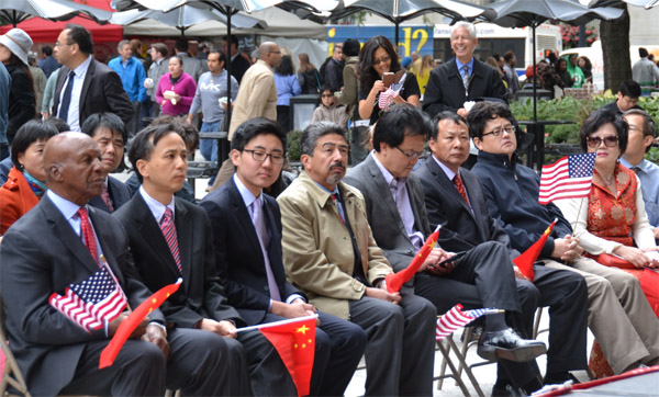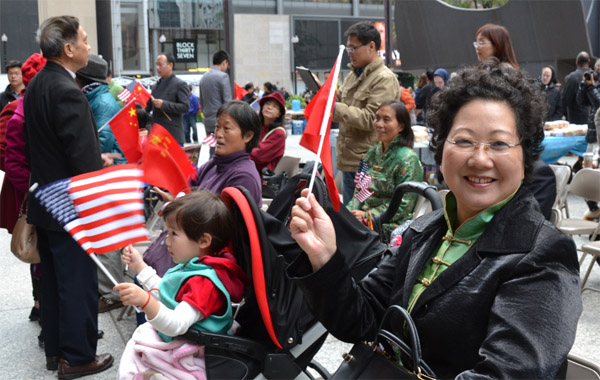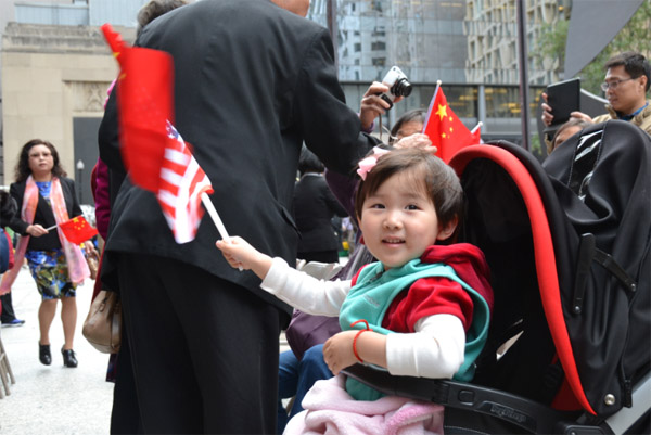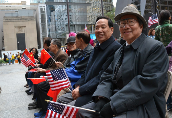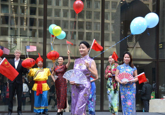 中国驻芝加哥总领事馆赵卫平总领事、伊州州务卿杰西怀特(Jesse White)、芝加哥第25区区长苏礼仕等,以及伊州州长、芝加哥市长特别代表,与各界侨领一起出席了当日的活动。升旗仪式之后的旗袍秀、中国民族服装表演成为本次升旗典礼一大特色亮点。