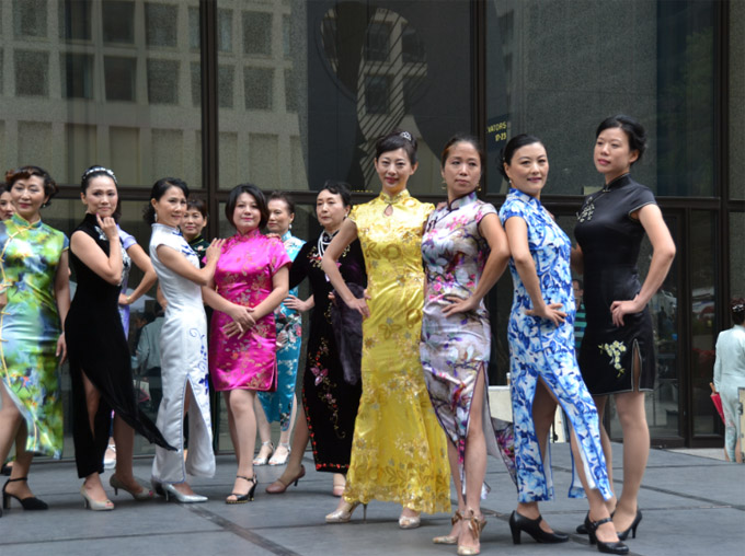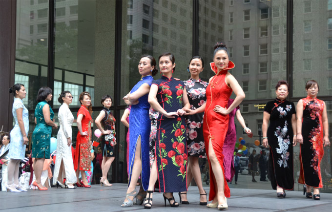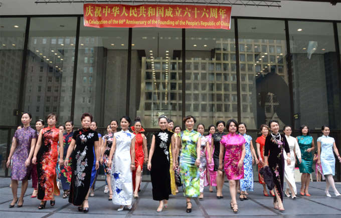 在升旗仪式之后,中国旗袍芝加哥分会、世界旗袍联合会芝加哥分会均为大家带来旗袍秀表演,展现中国旗袍的文化底蕴,还有希林中心的中国民族服装秀,均吸引众多行人观看。 (图文: