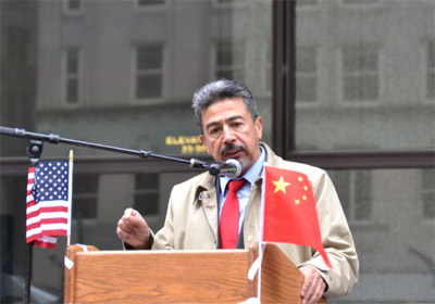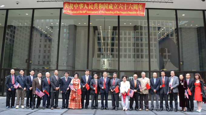 华联会主席汪兴无在致辞时表示,新中国成立66周年以来解决世界上最大的贫穷问题,成为世界第二大经济体,对世界和平和经济发展做出了极大贡献,他代表大芝加哥地区华侨华人,在这个特别日子里,祝愿中国经济持续繁荣,祝愿中美两国友好关系继续深化发展。