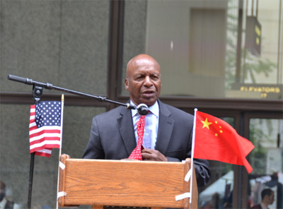 曾经多次到中国访问的州务卿杰西怀特、芝加哥25区区长苏礼仕,当天均应邀登台致辞,两位政要均对中国的大好河山,深厚的历史文化韵味,特别是令人难忘的中国美食大家赞扬。伊州州长、芝加哥市长特别代表当天也分别宣读州长、市长的贺信,对中国国庆66周年表示祝贺,并希望继续发展对华友好合作。