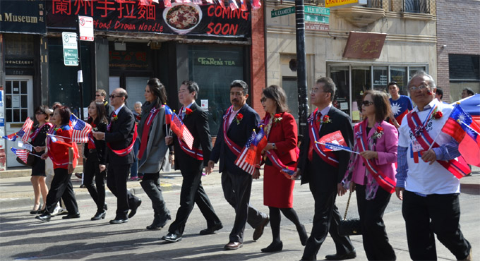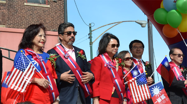 在游行嘉宾阵容,中华会馆主席刘国新、董事长黄于纹,芝加哥25区区长苏礼仕,台北经济文化办事处何震寰处长、郭圣明副处长,芝加哥僑教中心主任王偉讚,僑務委員區一平、周賢孟、項邦珍、李香蘭,以及华商会会长谭小平等嘉宾沿途向观众挥手致意。